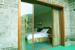 鳳凰江天旅游度假村位于湘西自治州鳳凰縣古城區(qū)內(nèi),東鄰虹橋路交通方便,南有清澈的沱江自西向東川流不息,東南角緊靠蜚聲海內(nèi)外的風(fēng)雨樓——虹橋,與風(fēng)姿綽綽的吊腳樓群隔江相望,是鳳凰古城控制區(qū)內(nèi)唯一按準(zhǔn)四星級標(biāo)準(zhǔn)建造的、具有仿古建筑特色和現(xiàn)代化室內(nèi)裝修的、集休閑、購物、度假、商務(wù)于一體的旅游度假村。 鳳凰江天旅游度假村主體酒店客房部均為三層仿古建筑,形成以別致的個性小花園為中心的主樓區(qū)和副樓區(qū),目前擁有各種客房110余間,分為:帶觀景陽臺、配備高檔液晶電腦、獨(dú)立寬帶上網(wǎng)的商務(wù)房,帶客廳、廚房和露臺花園的豪華套房,以及豪華標(biāo)準(zhǔn)房,所有客房提供免費(fèi)寬帶接口。同時擁有可容納400人同時用餐的具有民族特色的大型餐廳,大、小會議室和近80個車位的停車場,商業(yè)走廊可讓您盡情享受各種民族特色的服飾與小吃,整個度假村與鳳凰古城融為一體,是您休閑度假、商務(wù)旅游的最佳場所,更是您與古城親密接觸的理想平臺。 |