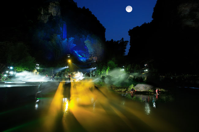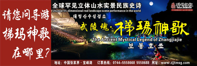 《武陵魂•梯瑪神歌》是一場(chǎng)記述土家族起源、演變、戰(zhàn)爭(zhēng)、生產(chǎn)生活等內(nèi)容的大型立體山水實(shí)景演出,揉合了音樂(lè)、舞蹈、文學(xué)等多種藝術(shù)形式,如幻如夢(mèng)的舞美燈光,搖曳生姿的原生態(tài)歌舞……濃縮了土家族數(shù)千年的發(fā)展歷史,400多名演員以自然淳樸的表演充分的展示了土家的民族文化特征,給游客帶來(lái)了耳目一新的感受。一場(chǎng)視聽(tīng)的饕餮盛宴,一曲驚天地、泣鬼神的曠世古歌,給人山水文化光影視聽(tīng)的享受。【出品:張家界梯瑪神歌文化傳播有限公司】