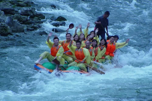 猛洞河漂流 你屏住呼吸,你簇緊筋肉,眼看著隘口灘關(guān)臨近了,卻彈指剎那,電光一閃,就到了腦后,是闖還是飛過來的,你已經(jīng)沒有心思去搞明白,你只覺腦袋里面空空如也,全身一輕,被壓到極限的一根彈簧頓然松脫回到原位!幸福的解放。高峰的體驗(yàn)。在人群里許多年小心翼翼,不便吐出的嘶喊,這里,由著你在一個(gè)瞬間,奪腔而出!