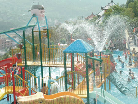 兒童游樂園 卡通噴泉、急速滑梯……這里的童話世界讓您的孩子恍若天使般幸福、快樂!銀鈴般的笑聲,充滿童稚音的歌聲,響徹云霄。美妙的孩童時(shí)光從這里開始,五彩斑斕的人生從這里起步。水溫36-38度,專為兒童設(shè)計(jì),設(shè)有水上滑道和花樣繁多的兒童小品:蘑菇噴淋、水槍、浮漂等,讓您的孩子盡情釋放活潑快樂。
