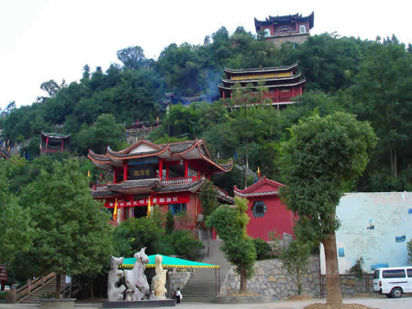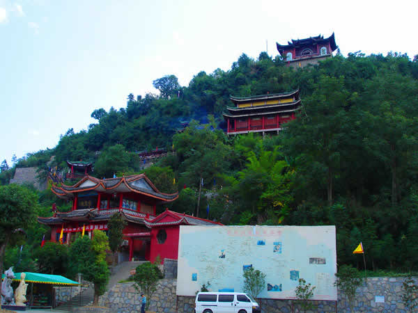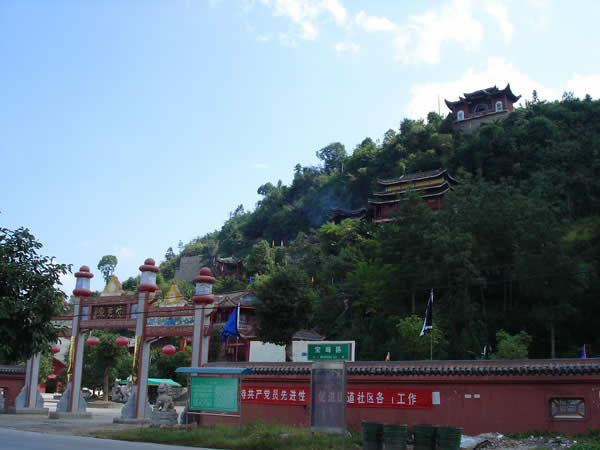 紫霞觀 紫霞觀始建于明朝嘉靖年間,近500年的歷史,在戰(zhàn)亂時期收到不同程度的破壞。紫霞觀是1992年因旅游事業(yè)的發(fā)展,教徒的信教,經(jīng)政府的批準,由各地的善男信女共同捐資,當?shù)卣畵芸顢U建起來的。道觀共有大小殿廟30余座,計5殿、3宮、2亭、2廟、1閣、八仙山、仙人足跡石、中華同心鎖等景點。中國著名書法家沈鵬先生為紫霞觀題寫了觀名,觀內(nèi)有國內(nèi)外著名書法家的題詞、碑刻等宗教文物,以及老子教祖講經(jīng)說法渡化圖一百余幅。
