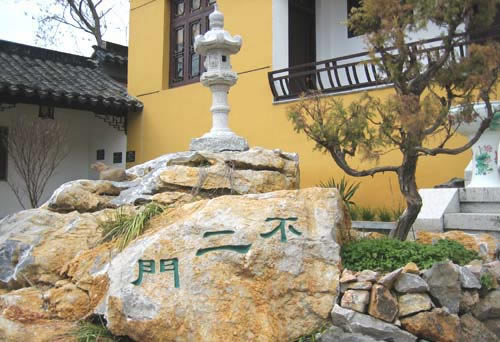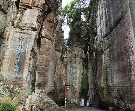 不二門 清嘉慶年間辟有洗心池!安欢T”如斧斫神劈,為石林天成,石林壁上鐫滿歷代文人的詩詠。這里古柏參天,藤蘿倒掛,環(huán)境幽美。有壁石如書的萬卷書者,有嵐霧束腰的七級青石培英塔。凝神盤坐的南海觀音是一塊天然造型的巨石,惟妙惟肖。觀音巖周圍,環(huán)繞著具有明清風(fēng)格的地藏庵、嵩山堂、水府閣等建筑物,布局靈巧緊湊,主題鮮明,因勢造景。景點(diǎn)間曲徑迂回,迷趣深奧,稱八陣圖。景區(qū)內(nèi)的河灘上有兩處溫泉,氤氳縈繞,水溫適宜(41℃),水質(zhì)良好,能治療多種疾病?h城人民經(jīng)“不二門”前往溫泉就浴者絡(luò)繹不絕,現(xiàn)又增建了石牌坊和民俗博物館。