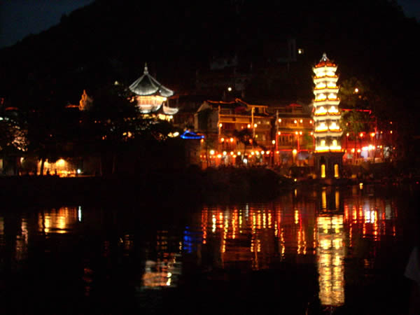 萬名塔夜景 為何要修筑這字紙爐,據(jù)說,乾隆五十年(1876年)古城擴建了筆架城以后,形似筆架,故名“筆架城”,有了筆架峰,為培植風水,便在沙灣黃土坎江邊修筑字紙爐寶塔一座,象一支筆,與筆架城相對應(yīng),意欲使鳳凰人文蔚起。