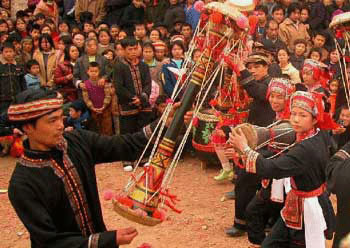 桑植縣白族仗鼓舞 仗鼓舞是白族的一種獨特舞蹈,尤其是張家界天子山一帶的白族人,大都愛跳仗鼓舞。逢年過節(jié)、游神、趕會,山山寨寨都要舉行歡樂的“跳舞節(jié)”。仗鼓舞根據人數多少,分為4人舞、8人舞、32人舞等多種形式,主要道具是仗鼓,鼓長1.2米,兩頭粗,中間細,因兩頭緊繃牛皮,敲擊時便“嘭嘭”作響。跳舞前須祭祀祖先,然后由三位德高望重的老者先入場引導圍圈歡跳,擺呵、蹬呵、拍呵,繞著場子一圈又一圈地跳,鼓聲陣陣,還有嗩吶、笛子等樂器伴奏,舞姿靈活多變,古樸大方,驚險敏捷,民族色彩濃郁。