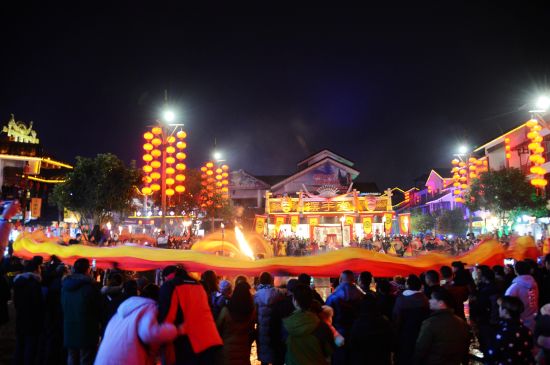 火龍出場,街區(qū)狂舞;盤龍點(diǎn)睛,眾人祈福。12月21日,農(nóng)歷冬至,當(dāng)天夜晚在旅游勝地張家界武陵源區(qū)溪布老街?jǐn)[手堂廣場啟動(dòng)的 “武陵腔調(diào):趕火趕戲趕大年”活動(dòng)儀式上,一條全身似火的長龍?jiān)诮倜良覂号奈鑴?dòng)下 “閃亮”登場,格外耀眼。據(jù)了解,這條長龍身有香味,全長108米,是目前世界最長的香火龍。