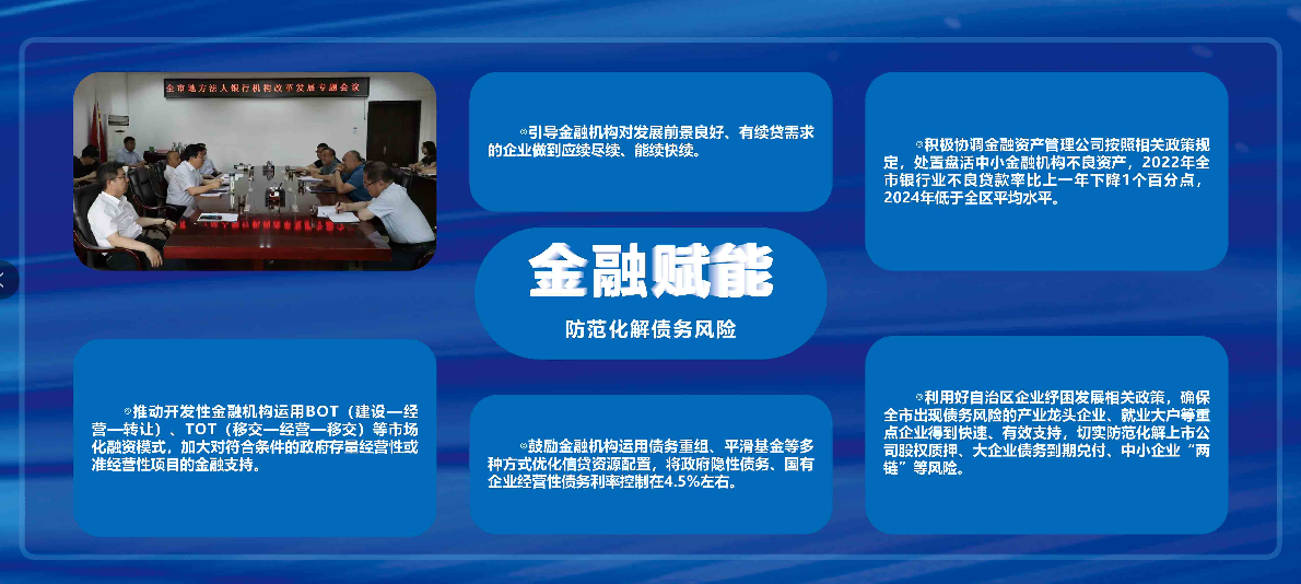 為全面貫徹落實(shí)黨中央、國務(wù)院關(guān)于金融工作的決策部署,深入落實(shí)全國、全區(qū)、全市穩(wěn)住經(jīng)濟(jì)大盤各項(xiàng)政策措施要求,按照市委五屆二次全會暨經(jīng)濟(jì)工作會議精神,結(jié)合我市金融工作實(shí)際,經(jīng)市政府第15次常務(wù)會研究審議后,印發(fā)實(shí)施了《行動方案》。通過十項(xiàng)金融賦能具體舉措,全面促進(jìn)金融資源與實(shí)體經(jīng)濟(jì)精準(zhǔn)對接,進(jìn)一步加大對綠色低碳、科技創(chuàng)新、鄉(xiāng)村振興、普惠民生等重點(diǎn)領(lǐng)域的金融支持力度,打造金融高地,助力全市經(jīng)濟(jì)社會高質(zhì)量發(fā)展。